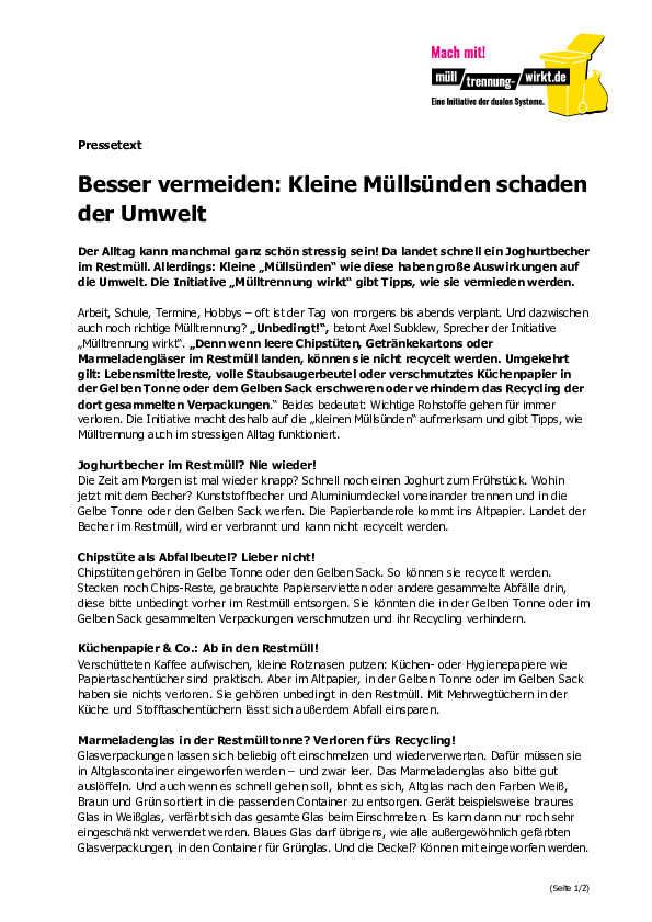 - im Mai: „Von Altglas bis Joghurtbecher“ – Die besten Orgatipps für Mülltrennung mit Hinweis zum neuen Mülltrenn-Spiel